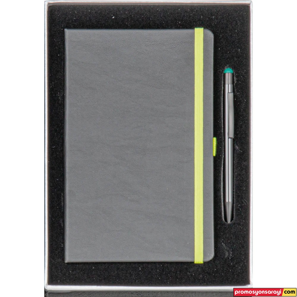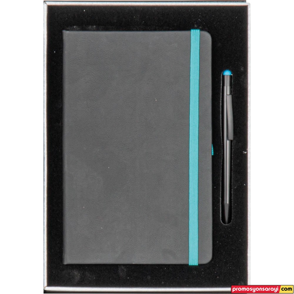• * 13 x 21 cm Termo Deri Defter (Ulus) * Tükenmez Metal Kalem (0555-335) * Kutu: Cilt Bezi